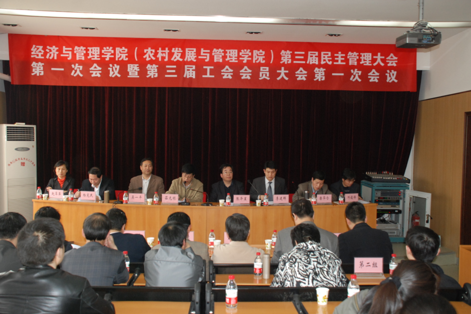 (农村发展与管理学院)在文化路校区二号楼四层报告厅胜利召开三届一次民主管理大会。校工会副主席茹光明、院党政班子成员和学院全体教职工参加了会议。