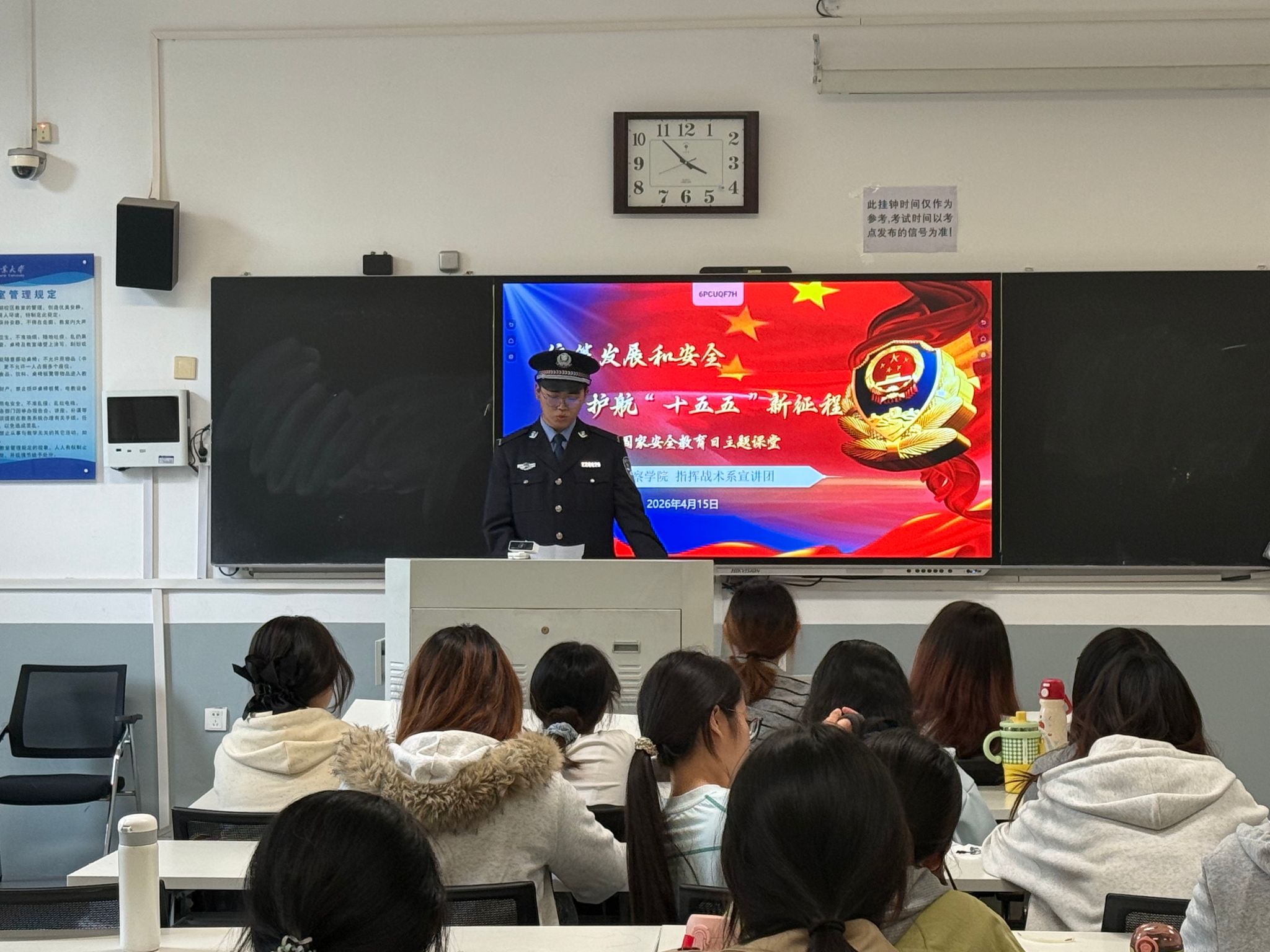 班级,利用课间15分钟开展国家安全知识微宣讲。学警们着装规范、列队入校,安静有序进入教学楼,以庄重敬礼开启宣讲,围绕总体国家安全观、网络安全、反间谍、校园安全防范等核心内容深入浅出讲解,并通过互动问答与同学们交流,让国家安全知识在轻松氛围中入脑入心。